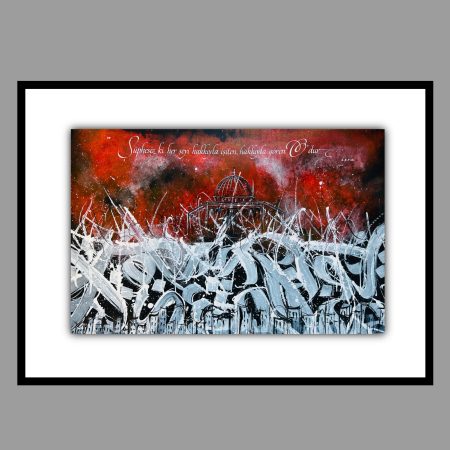 30.000,00₺Bu büyüleyici İslami hat duvar sanatıyla Aşık Veysel’in mirasını kutlayın. 28,7″x40,6″ (73×103 cm) ölçülerindeki, kalın kağıt üzerine yapılmış bu büyük resim, kültürel önem ve sanatsal parlaklıkla yankılanan bir şaheser yaratmak için akrilik ve yağlı boya tekniklerini bir araya getiriyor.